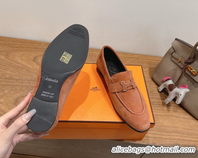 Top Grade Hermes Paris Loafers in Suede with H Brown 2025 H082005 0820044