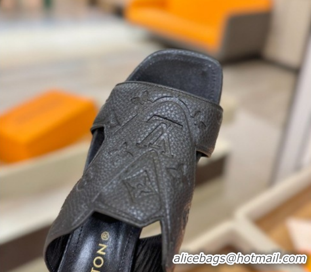 Good Product Louis Vuitton Grained Leather Heel Slides Sandal 5.5cm Black 2026 LV030301