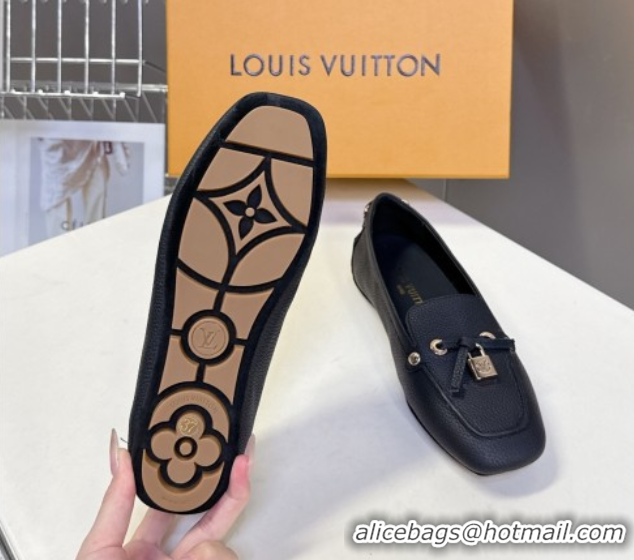 Top Grade Louis Vuitton Flore Car Shoe Loafers in Grained Leather 1AICKY Black