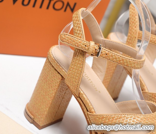 Top Grade Louis Vuitton Maya Heeled Platform Sandals 10cm in Raffia Straw Brown 1AHNP0 1022090