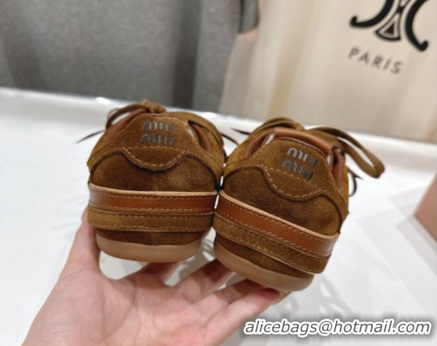 Cheap Price Miu Miu Gymnasium Sneakers in Suede Leather Brown 1024084