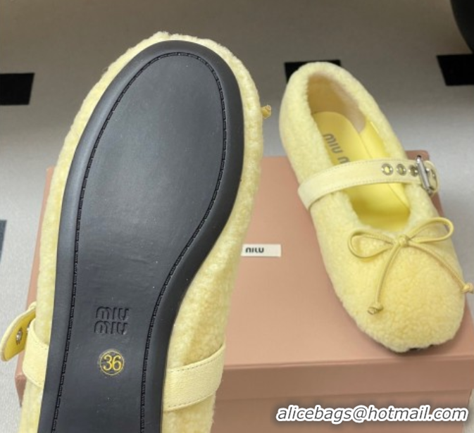 > Shoes Plaza > Miu Miu Shoes > Unique Style Miu Miu Shearling Ballerinas Flat with Buckle Strap Yellow 5F272E 1025051 2025