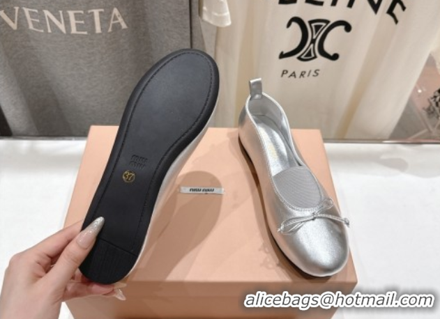 Best Product Miu Miu Elan Nappa Leather Ballerinas Flat with Bow and Elastic Gusset Silver 5F552E 1025052 2025