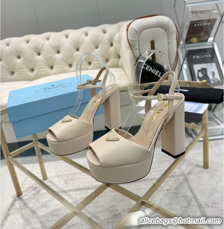 Best Price Prada Leather Platform Heel Sandals 12cm PR102707 White 2025