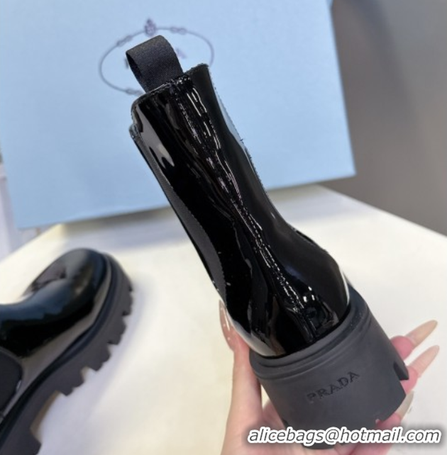 Unique Style Prada Patent Leather Platform Ankle Boots 5cm Black 2025 1T186O 1027083
