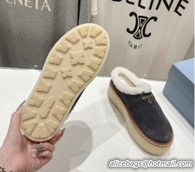 Your Position: Home > Shoes Plaza > Prada Shoes > Good Looking Prada Suede and Wool Platform Mules Dark Grey 1S715N 1027009