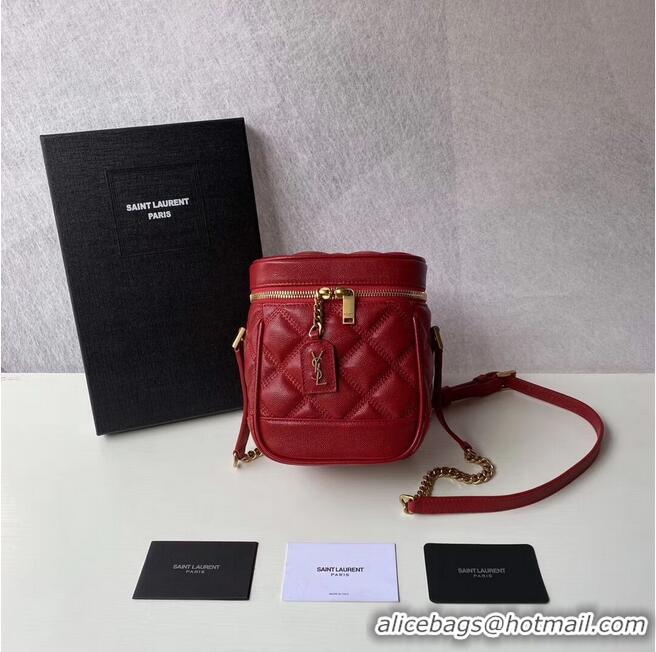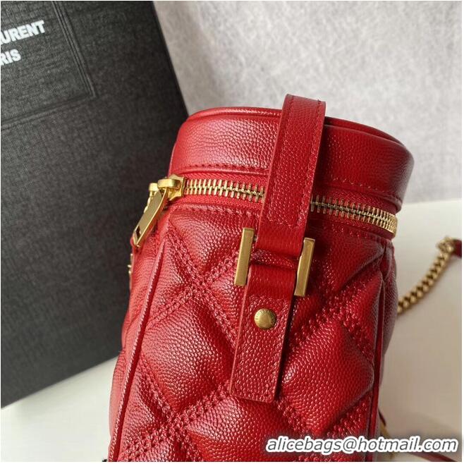 Your Position: Home > Yves Saint Laurent Bag > Unique Style SAINT LAURENT 80S VANITY BAG IN CARRE-QUILTED GRAIN DE POUDRE EMBOSSED LEATHER 649779 red