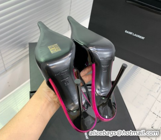 Unique Style Saint Laurent AMALIA Heel Slingbacks Pump 11cm in Patent Leather Black/Pink 1212089