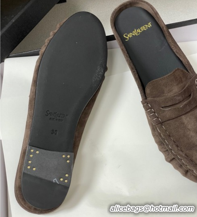Unique Style Saint Laurent Le Loafer Mules in Suede Deep Brown 1215025