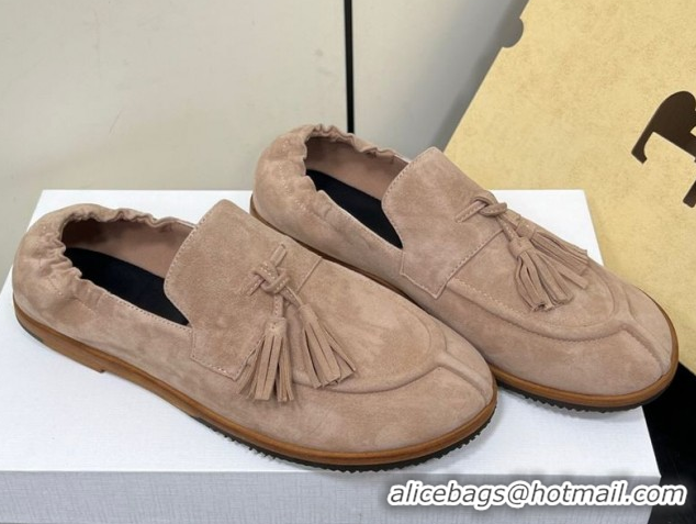 Unique Style The Row Suede Tassel Loafers Beige 0604114