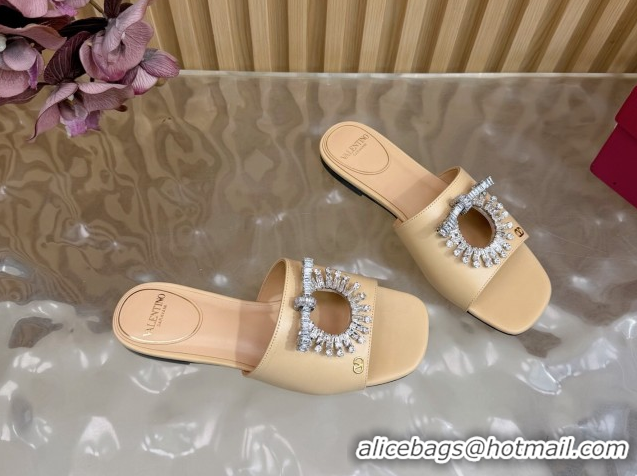 Unique Style Valentino Strass Embellished Flat Slides Sandal in Calfskin Leather Nude VLTN121509 51215116