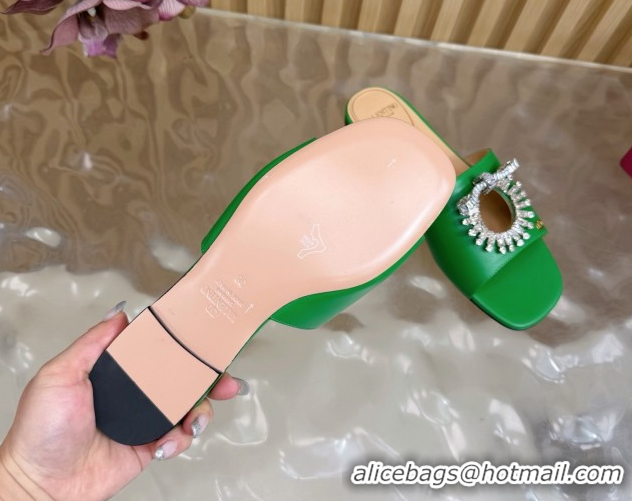 Top Design Valentino Strass Embellished Flat Slides Sandal in Calfskin Leather Green VLTN121509 51215117