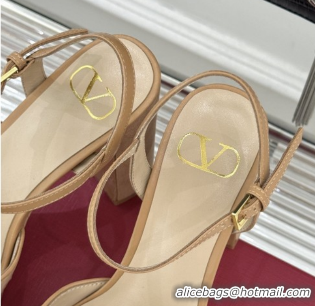 > Shoes Plaza > Valentino Shoes > Good Product Valentino VLOGO Signature Platform Pumps 11cm in Suede and Leather Light Brown 0224022