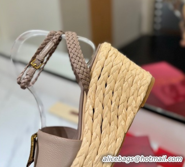 Unique Style Valentino VLogo Grainy Calfskin Wedge Sandals 9cm Dusty Beige 2025 VA082113 0821128
