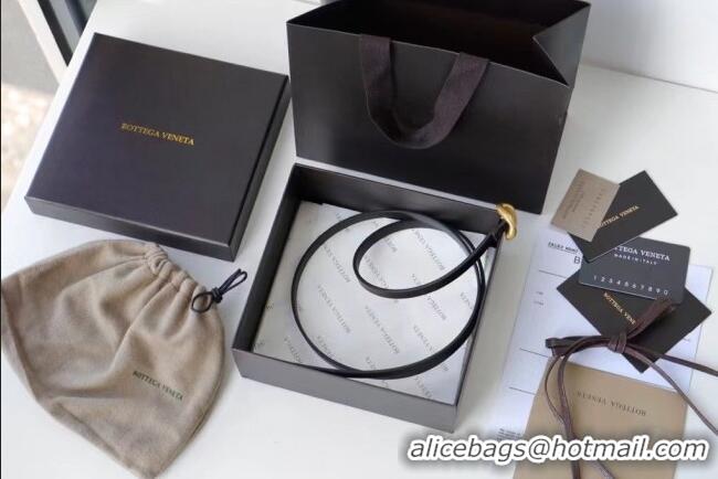 Well Crafted Bottega Veneta Calfskin Leather Belt 1cm with Knot Buckle 0725 Black 2025
