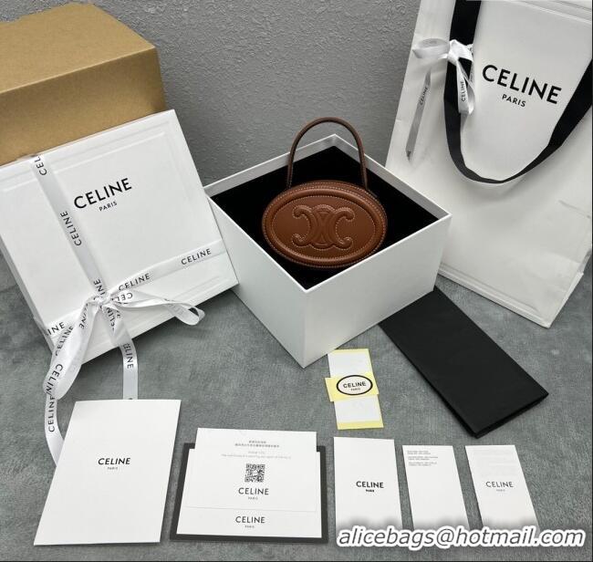 Well Crafted Celine TRIOMPHE Oval Top Handle Bag in Smooth Calfskin 198613 Brown 2024 Top