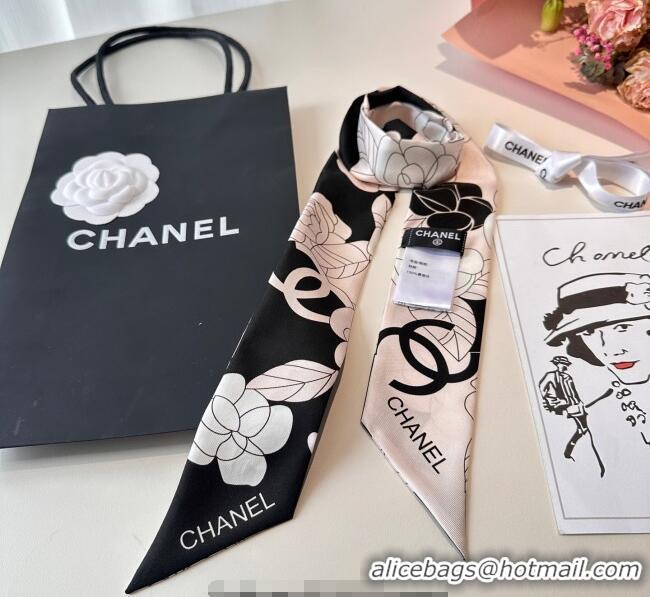 Well Crafted Chanel Camellia Silk Bandeau Scarf 6x120cm CH091024 Black/Pink 2025
