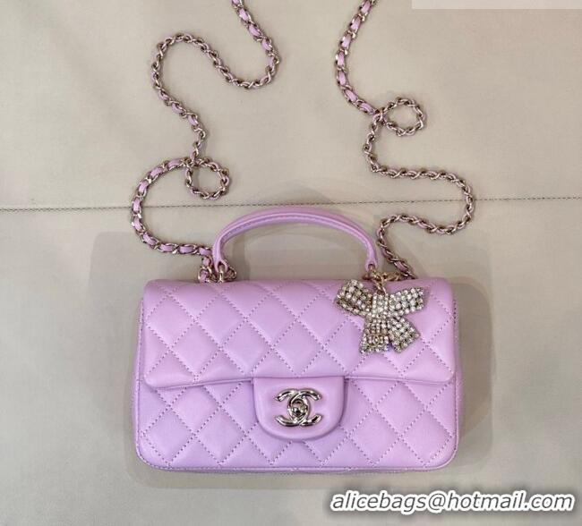 Low Price Chanel Lambskin Leather Mini Classic Flap Handbag With Top Handle and Bow Charm AS2431 Light Purple 2026