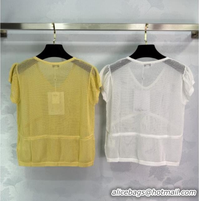 > Clothes Online > Chanel Clothes > Well Crafted Chanel Mesh Top 0814 Yellow 2025