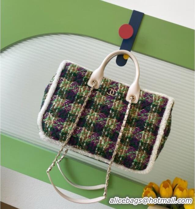 Well Crafted Chanel Tweed & Shearling Shopping Bag AS5689 Green/Purple 2025