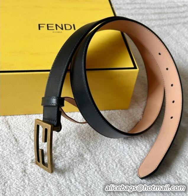 Well Crafted Fendi Women's Calfskin Belt 3cm with FF Buckle 0315 Black/Aged Gold 2025