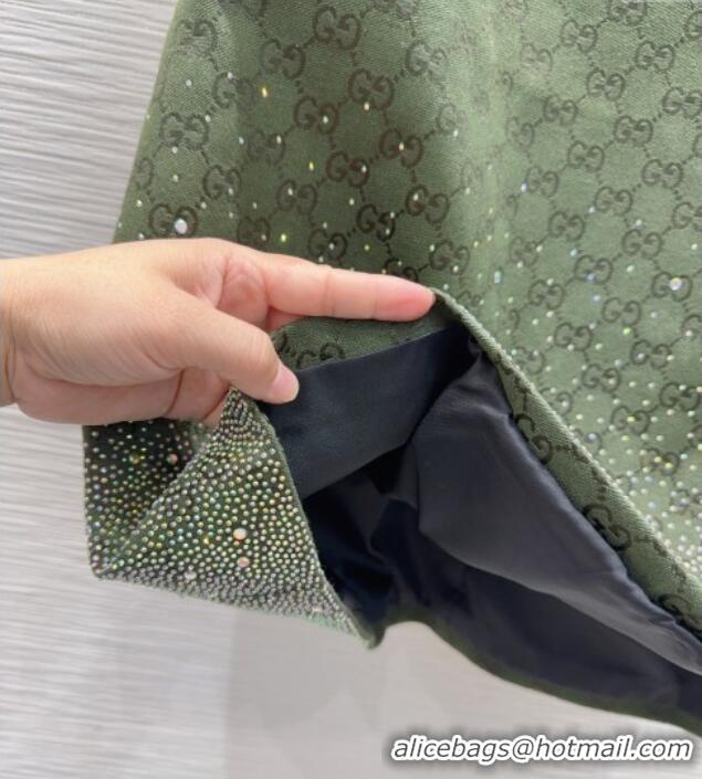 Famous Brand Gucci GG and Cotton Padded Dress with Strass 1015 Green 2025