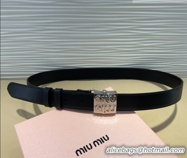 Well Crafted Miu Miu Calfskin Belt 3cm with Logo Band Buckle MM102201 Black/Silver 2024