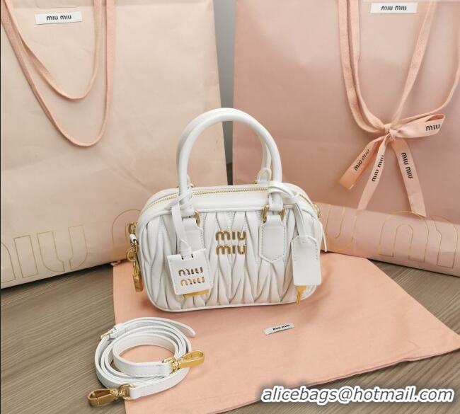 Well Crafted Miu Miu Matelasse Nappa Leather Top Handle Bag 5BB123 White 2025