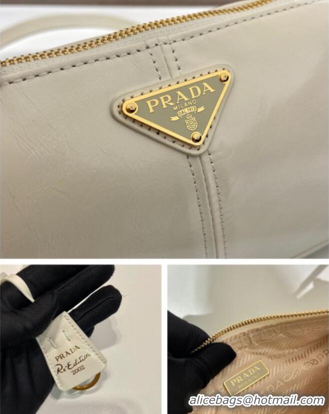 Well Crafted Prada Re-Edition 2002 medium leather shoulder bag 1BC221 White 2025