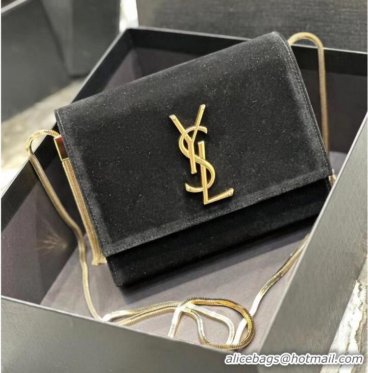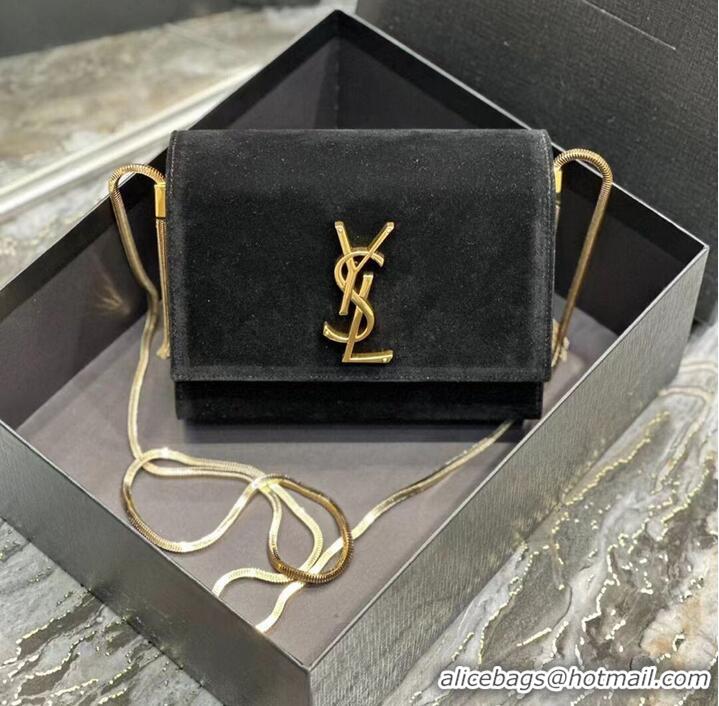 Top Quality SAINT LAUREN KATE MINI SUPPLE/REVERSIBLE CHAIN BAG IN SUEDE AND LEATHER Y791122 BLACK