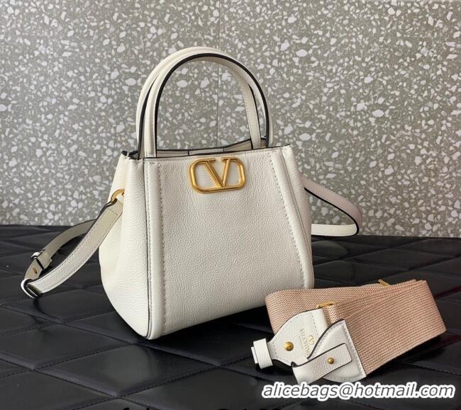 Good Quality Valentino Alltime Small Handbag in Grainy Calfskin 0288S White 2024