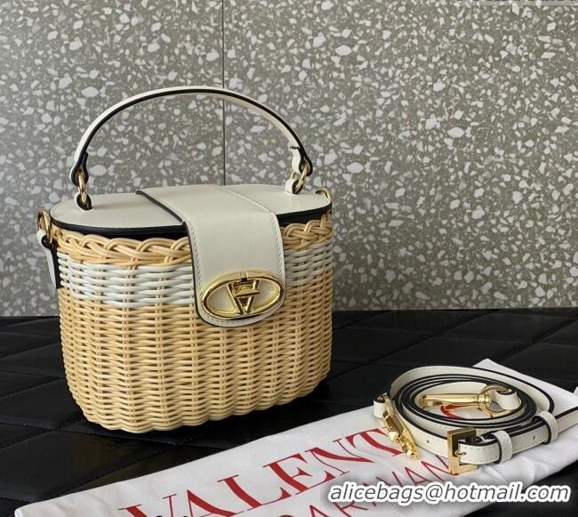 Top Quality Valentino VLogo Signature Wicker and Leather Vanity Case 5066 White 2024