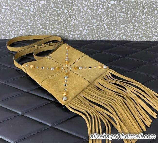 Well Crafted Valentino Nellcote Small Shoulder Bag in Suede with Fringes Tassel and Studs 2028 Khaki 2025