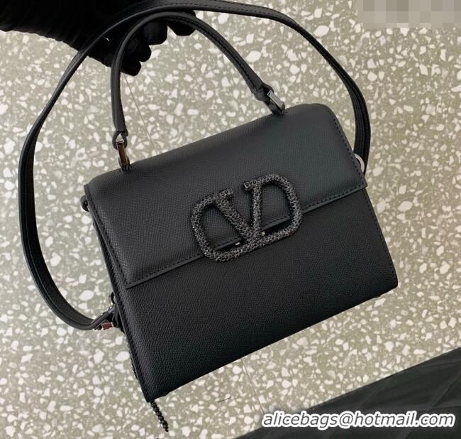 Well Crafted Valentino Small VSLING Grainy Calfskin Handbag with Strass 7020 Black 2025