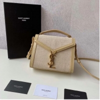 Well Crafted Yves Saint Laurent CASSANDRA SMALL TOP HANDLE IN BRAIDED TWEED Y622061-1 NATURAL BEIGE