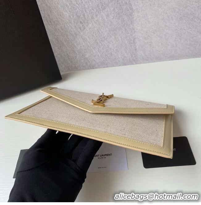 Well Crafted Yves Saint Laurent UPTOWN POUCH IN CANVAS AND SMOOTH LEATHER Y622053 NATURAL BEIGE